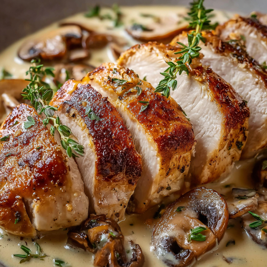 Indyk z Pieczarkami w Kremowym Sosie – Delikatne Mięso w Aromatycznym Sosie
