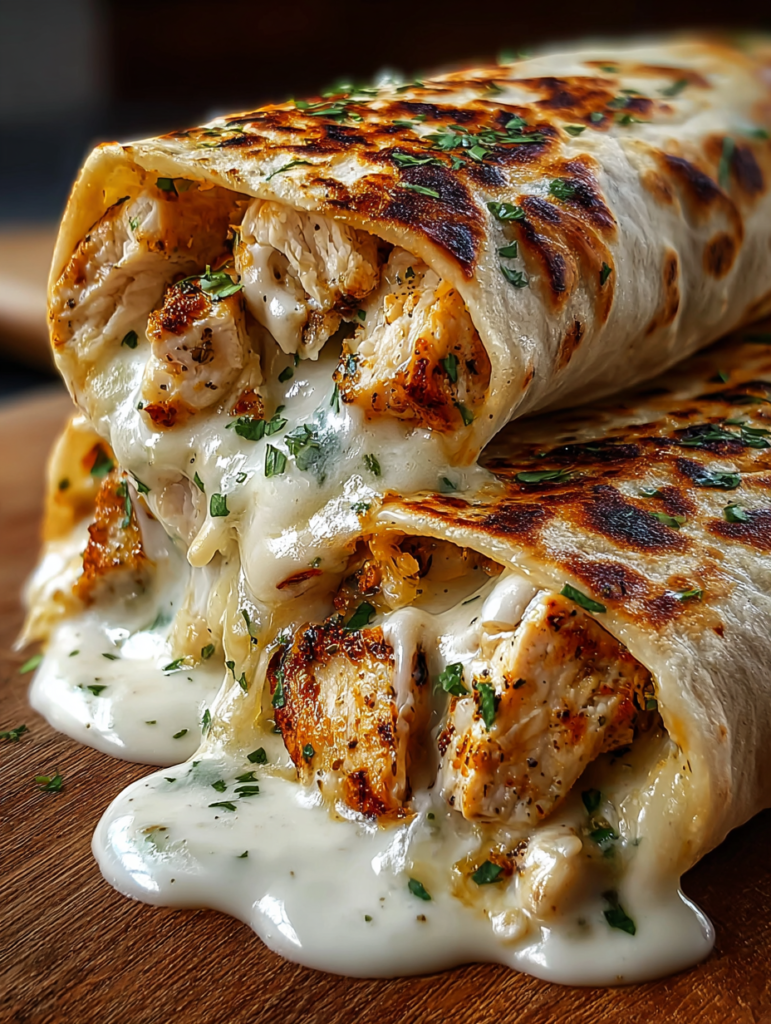 There’s something incredibly satisfying about a warm, melty wrap that pulls apart with strings of cheese. I discovered this recipe on a busy weeknight when I had leftover rotisserie chicken and needed dinner on the table fast. My family devoured these wraps so quickly that they’ve become our go-to meal whenever we crave something comforting but don’t want to spend hours in the kitchen. The combination of tender chicken, creamy garlic aioli, and gooey cheddar creates a flavor explosion that rivals any restaurant wrap.