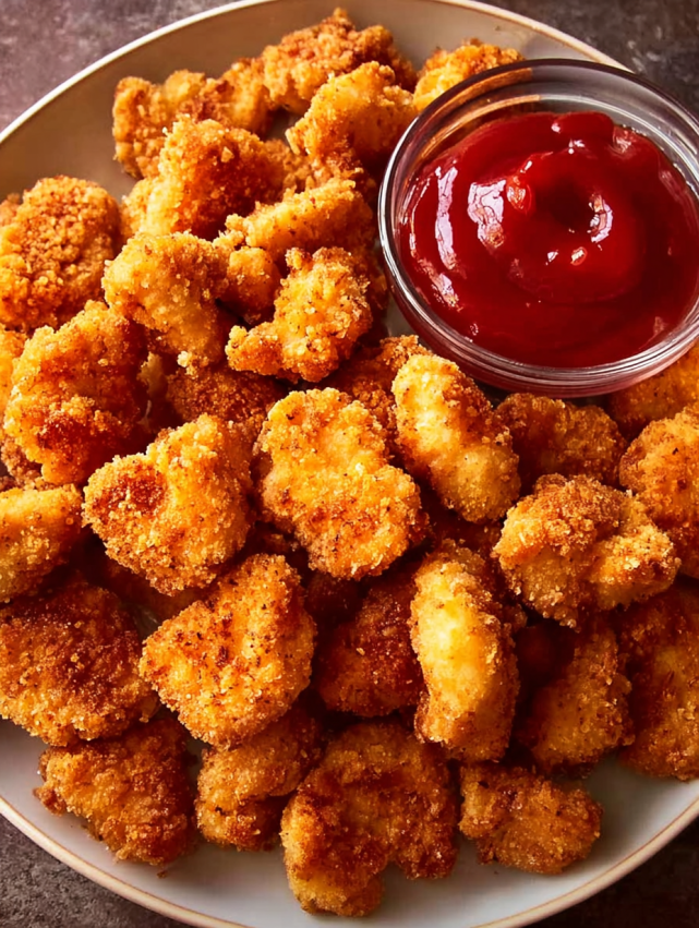 Ten domowy kurczak popcorn to prawdziwa uczta dla zmysłów. Chrupiąca panierka kontrastuje idealnie z soczystym, delikatnym mięsem w środku.