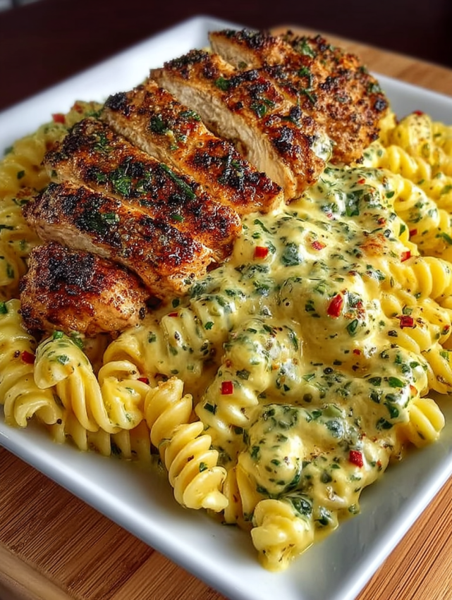 Step 7: Bring it all together Return the seared chicken (along with any accumulated juices) to the skillet. Add the drained pasta and gently toss everything together using tongs or a large spoon. If the sauce seems too thick, gradually add splashes of the reserved pasta water until you achieve a silky consistency that coats each piece of pasta beautifully.