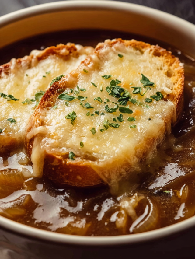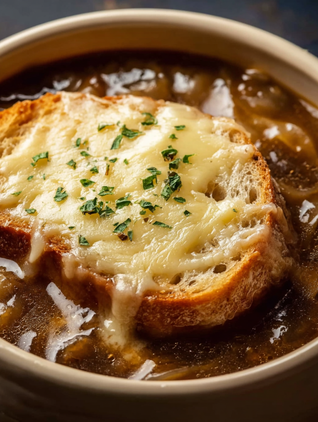 Głęboki, bogaty smak: Długo karmelizowane cebule tworzą słodko-słony fundament, który harmonijnie łączy się z aromatycznym bulionem. Ten proces wymaga cierpliwości, ale rezultat jest wart każdej minuty.