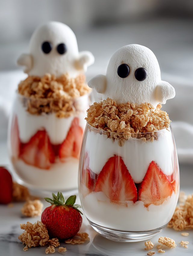 Assemble parfaits the night before, but keep marshmallow ghosts separate until serving time. This prevents them from becoming soggy while maintaining their adorable appearance. Simply store the completed ghosts in a small container and pop them on top in the morning.