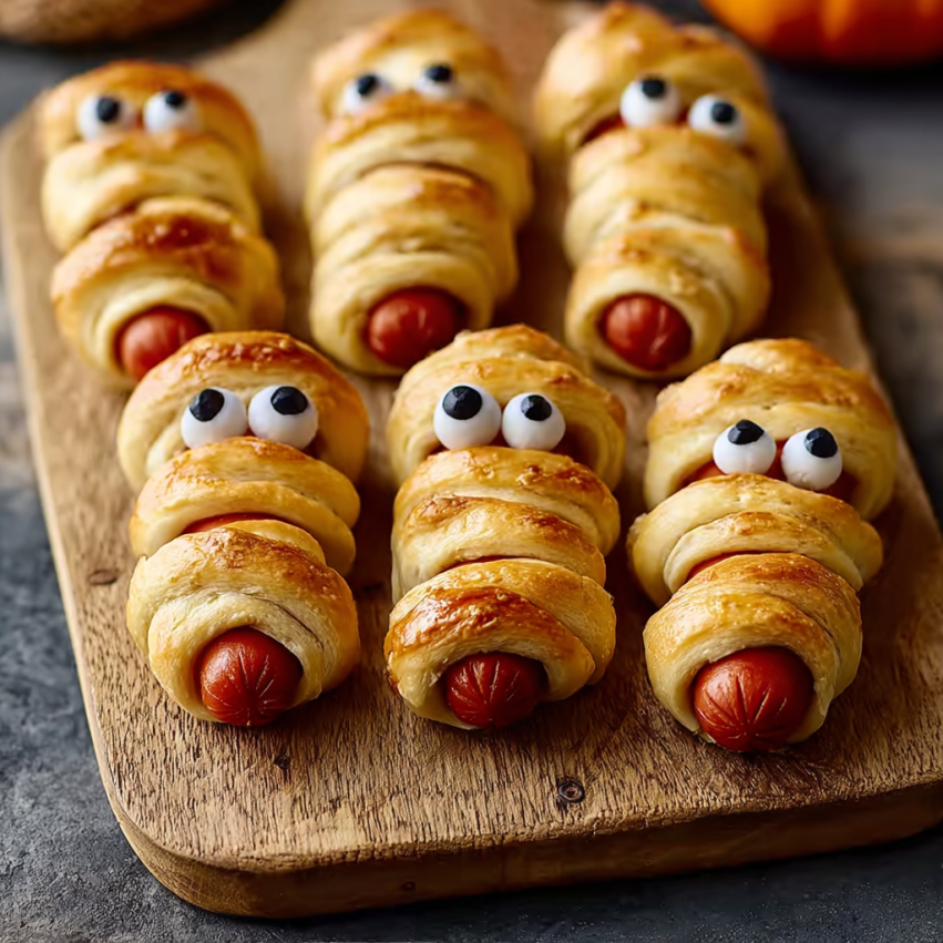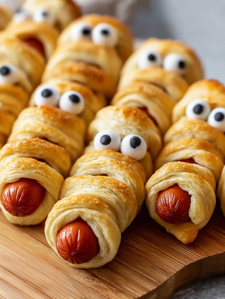 Perfect make-ahead party food. These mummies can be prepared several hours in advance and reheated just before serving. This flexibility means less stress when you’re hosting and more time to enjoy the festivities with your guests.