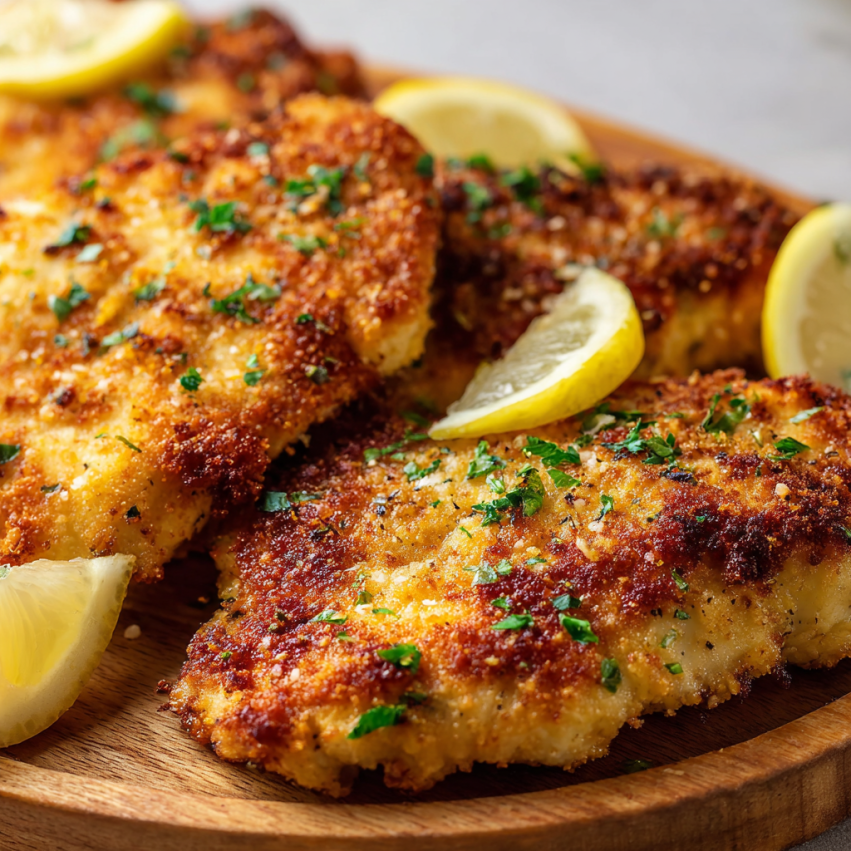 Złocista skorupka – parmezan i bułka tarta tworzą chrupiącą warstwę, która kontrastuje z delikatnym wnętrzem. To prawdziwa uczta dla zmysłów.