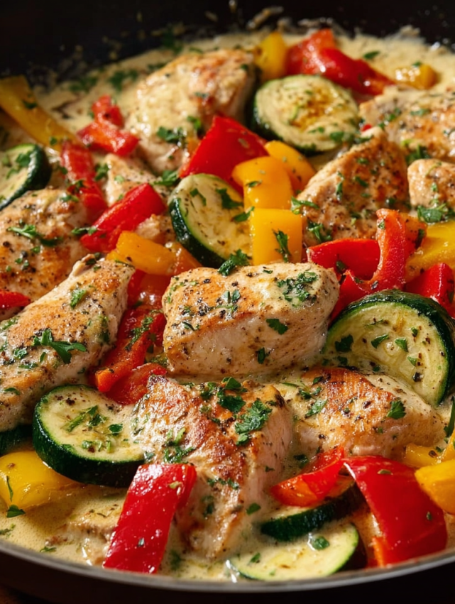Pamiętam, jak pierwszy raz przygotowywałam to danie na rodzinny obiad. Szukałam czegoś, co byłoby jednocześnie zdrowe, sycące i kolorowe – czegoś, co zadowoli wszystkich przy stole. Kurczak z warzywami w śmietanie okazał się strzałem w dziesiątkę! Od tamtej pory to przepis, do którego wracam regularnie, szczególnie gdy chcę przygotować coś szybkiego, ale efektownego.