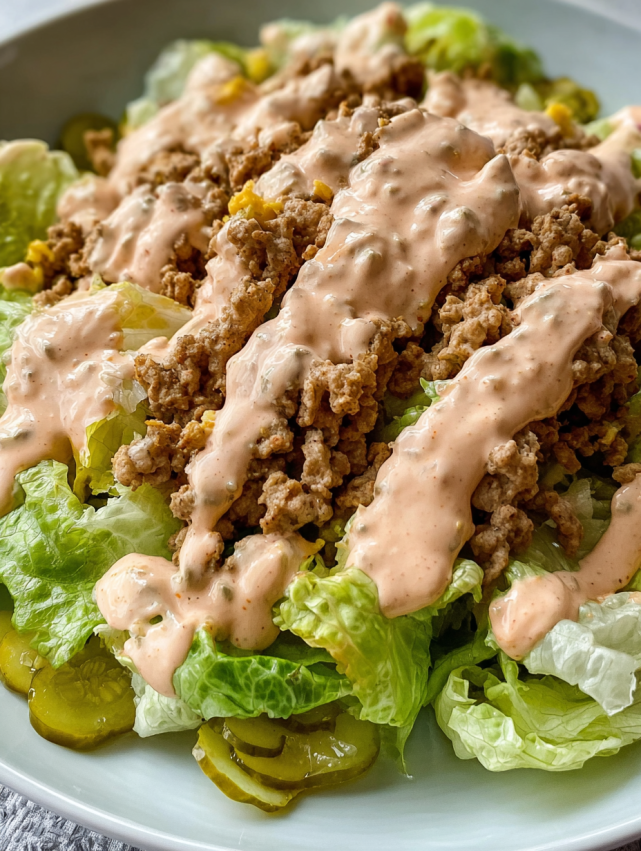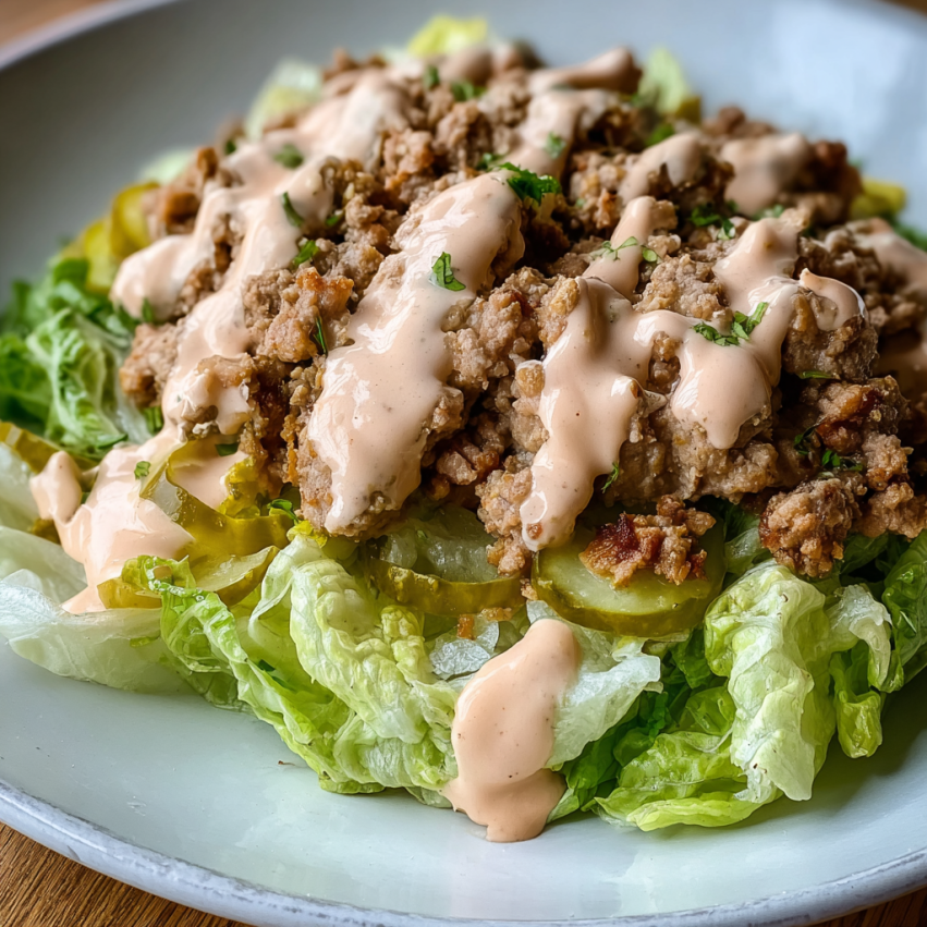 Ta sałatka wyróżnia się niezwykłym kontrastem smaków i tekstur. Chrupiąca sałata lodowa harmonizuje z delikatnym, doprawionym mięsem, podczas gdy kwaśne ogórki dodają świeżości całej kompozycji.