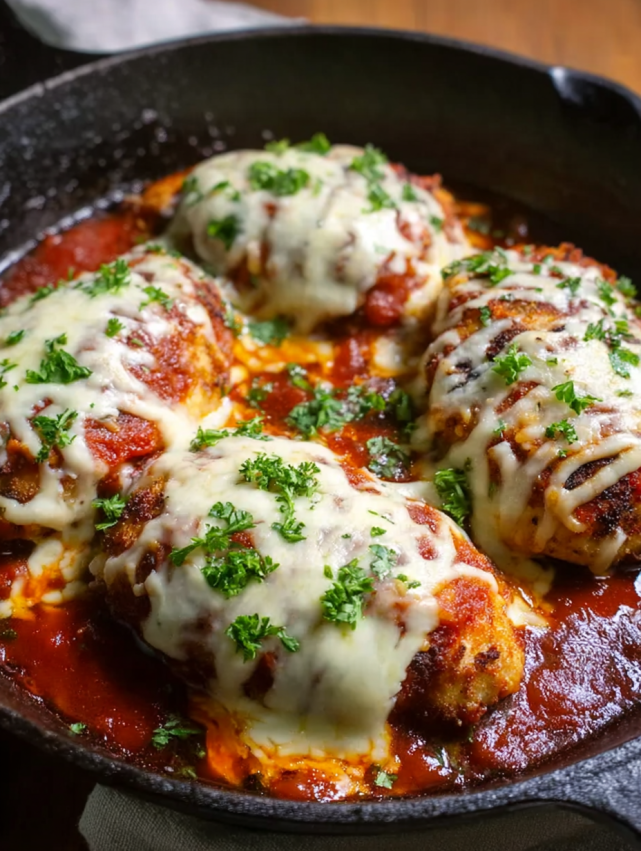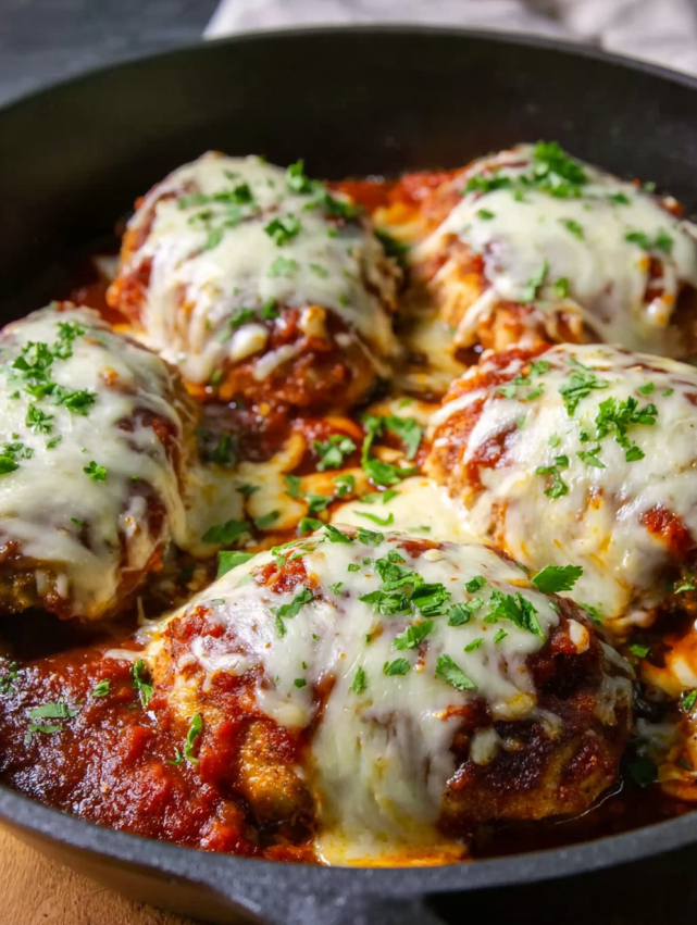 W ostatnim etapie posyp każde udko startą mozzarellą i piecz jeszcze 2-3 minuty, aż ser się rozpuści i lekko zarumieni. Przed podaniem posyp świeżą pietruszką dla dodania koloru i świeżości.