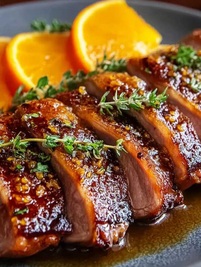 Piersi kaczki można zamarynować dzień wcześniej w mieszance soku pomarańczowego, miodu i tymianku. Przechowuj w lodówce w szczelnym pojemniku – mięso będzie jeszcze bardziej aromatyczne.