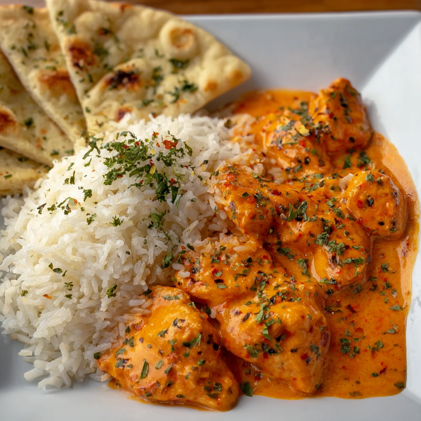 Transfer your butter chicken to a serving dish and serve it piping hot alongside warm naan bread and fluffy steamed rice. The combination of tender chicken, creamy sauce, and soft bread is simply heavenly. Don’t forget to have extra naan on hand—you’ll want every last drop of that incredible sauce!