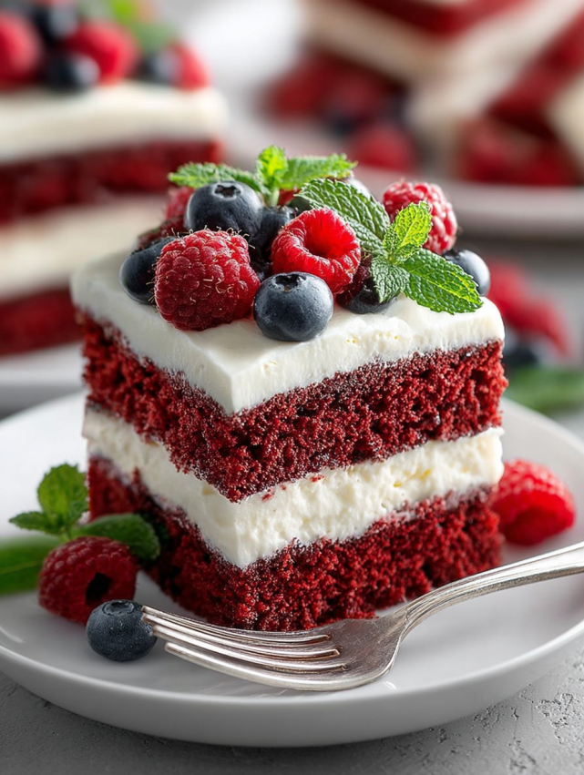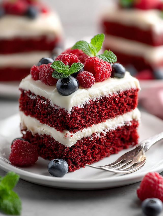 It’s visually stunning. The vibrant red color against the white frosting creates a show-stopping presentation. Topped with fresh berries, it becomes an Instagram-worthy masterpiece that tastes as good as it looks.
