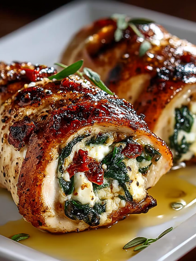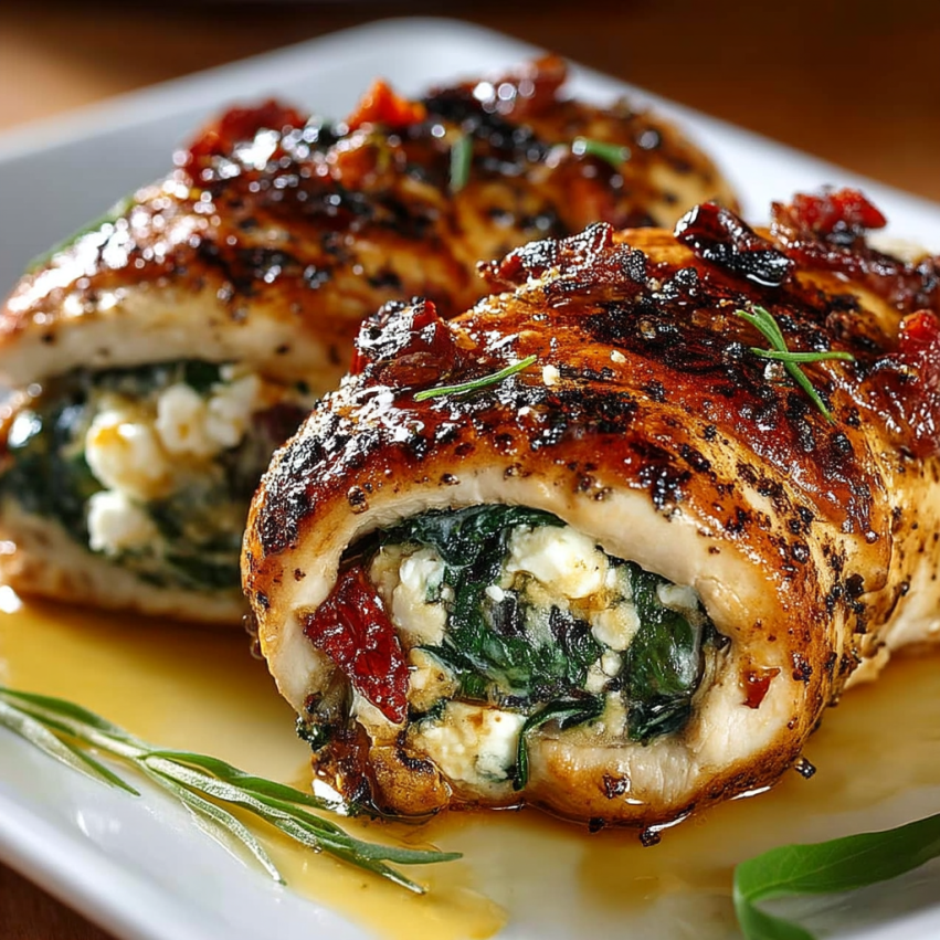 Rolled Up Chicken with Feta, Spinach, and Sun-Dried Tomatoes