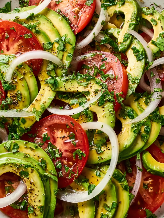 Połączenie pomidorów bogatych w likopen z awokado pełnym zdrowych tłuszczów tworzy nie tylko smaczną, ale i niezwykle pożywną kombinację. Te składniki wspierają zdrowie serca i dostarczają organizmowi naturalnych antyoksydantów.