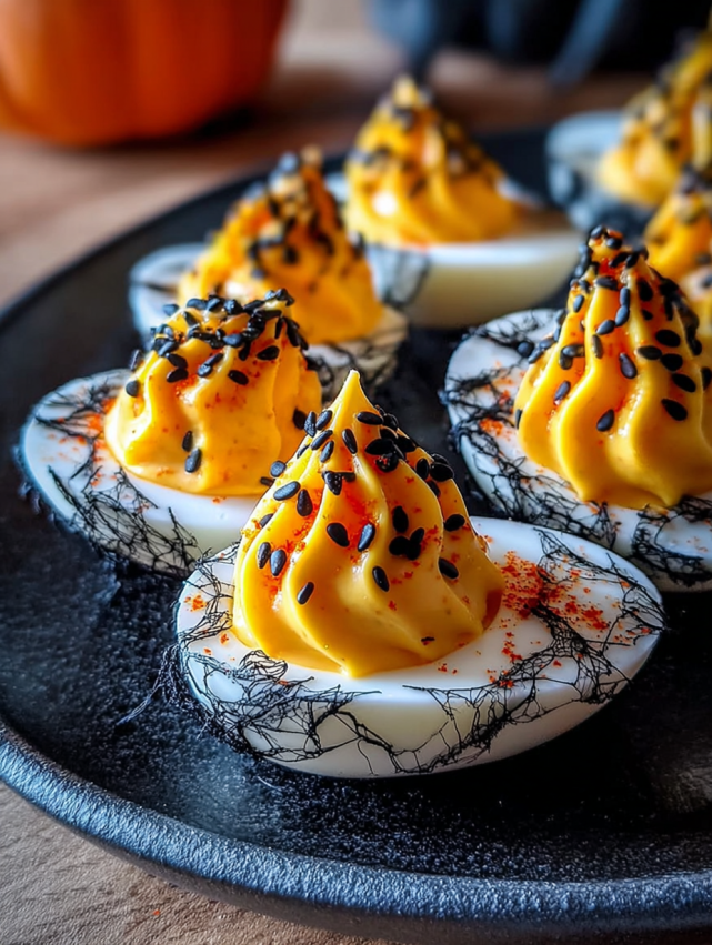 For a complete Halloween spread, pair these eggs with other finger foods like mummy hot dogs, witch finger breadsticks, or pumpkin-shaped cheese balls. They also work beautifully as part of a brunch buffet—just tone down the spooky garnishes if you’re serving them outside of October.