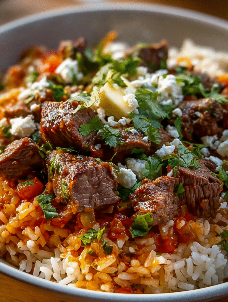 Steak Queso Rice — Hearty, Creamy, and Tex‑Mex Comfort