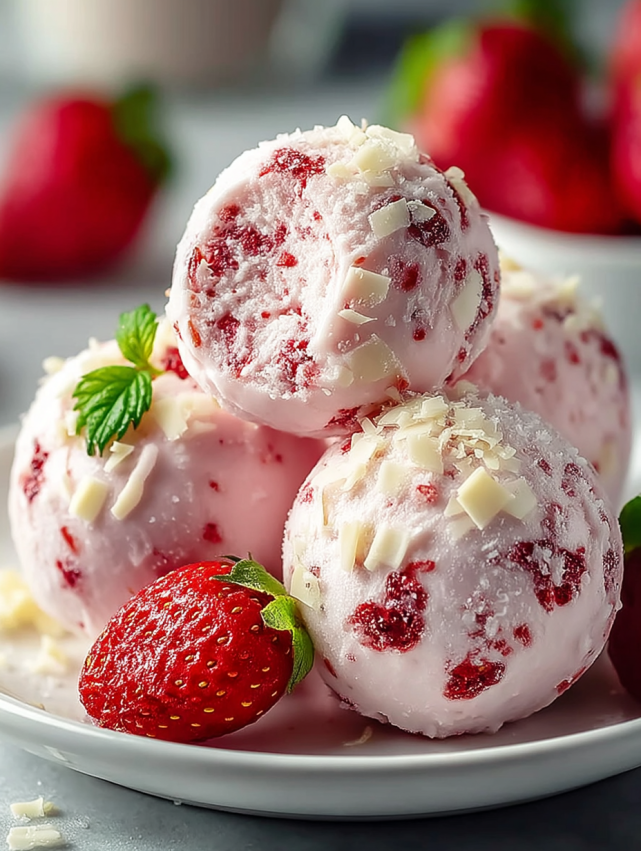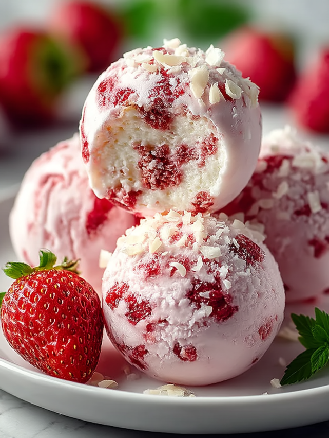 Strawberry Prep: Pat your chopped strawberries dry with paper towels before adding them to the mixture. Excess moisture can make the balls too soft and prevent them from holding their shape properly. Fresh strawberries work significantly better than frozen in this recipe because frozen berries release too much liquid as they thaw.