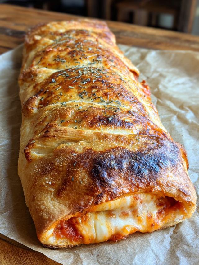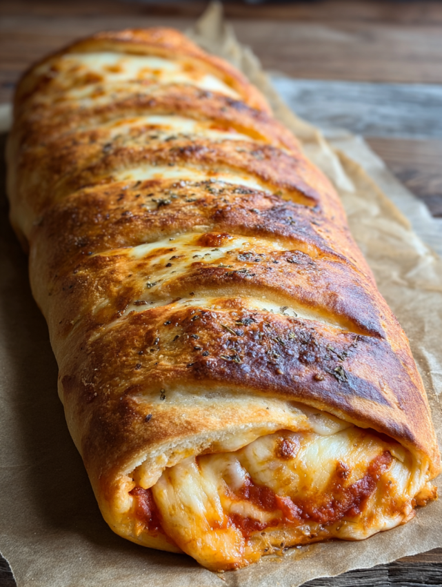 Gotowe stromboli można przechowywać w lodówce do 3 dni, zawinięte w folię aluminiową. Przed ponownym podaniem odgrzej w piekarniku w temperaturze 180°C przez 10-15 minut.