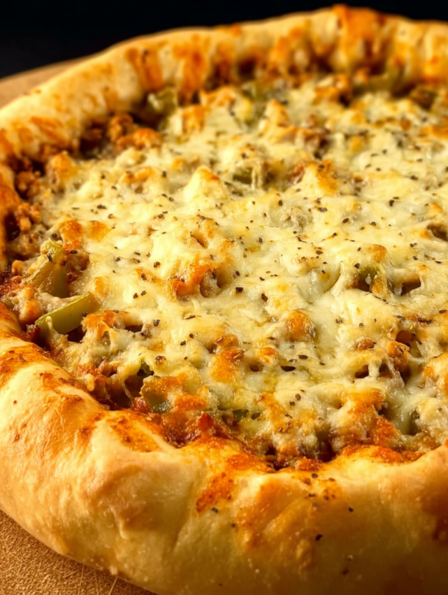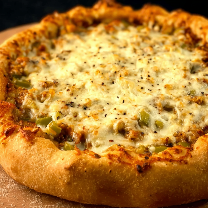 Krok 11: Przełóż schłodzone ciasto do naczynia, równomiernie je rozkładając. Opcjonalnie posyp wierzch dodatkową ilością sera dla złocistej skorupki.